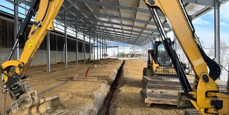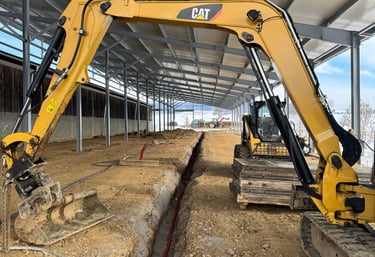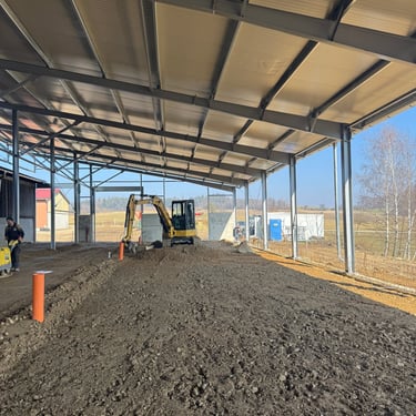 Kompletní zemní práce a příprava podkladu pro základovou desku haly v Častkovicích.